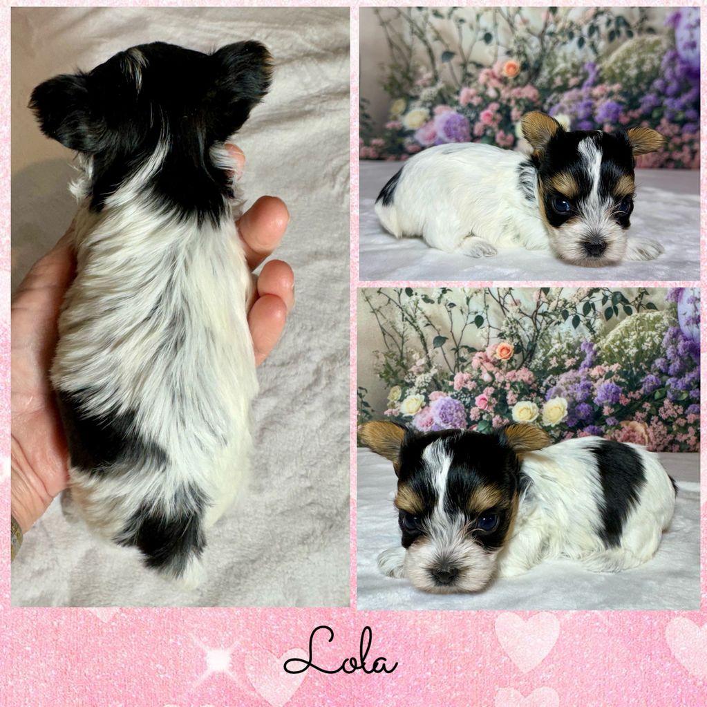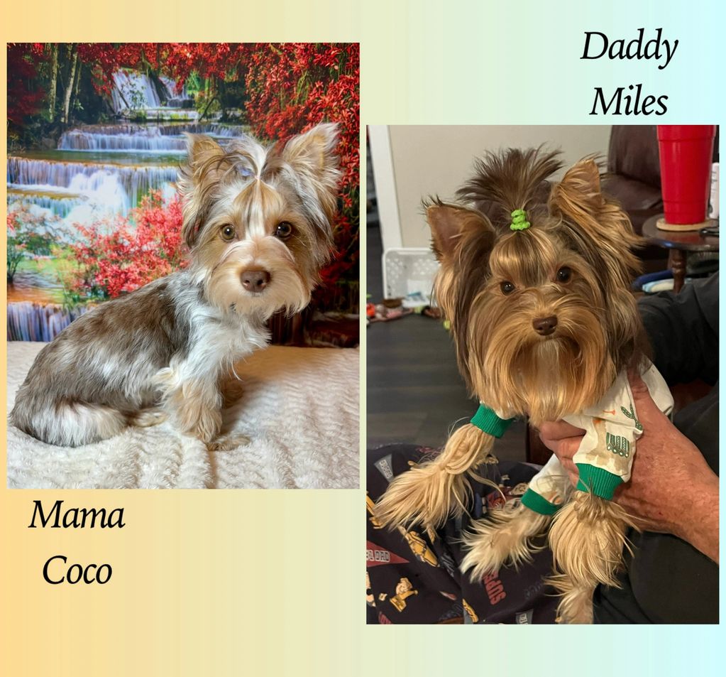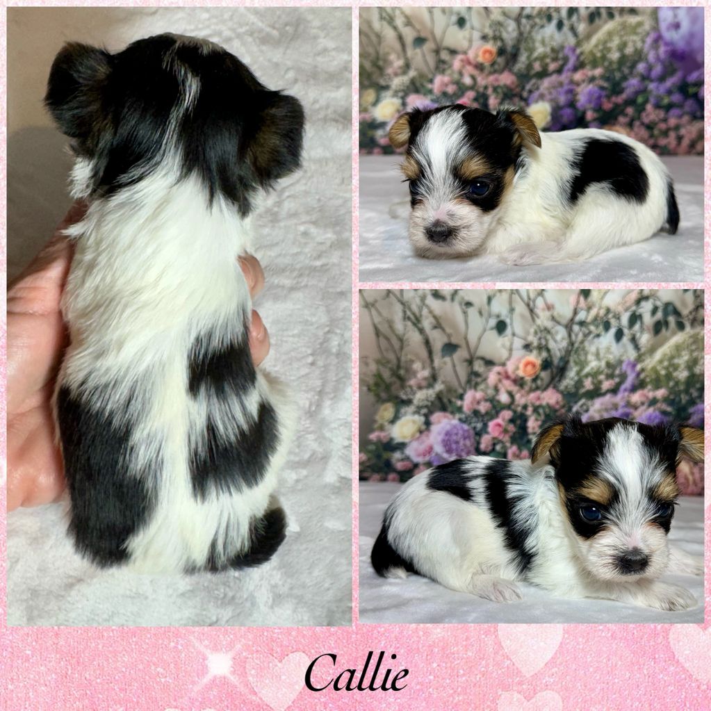 CKC female Parti Yorkie. Born Jan. 27, 2026. Will be vet checked and up to date on shots. Tail dock and dew claws have been removed. Charting around 4 lbs. Ready March 17, 2026.