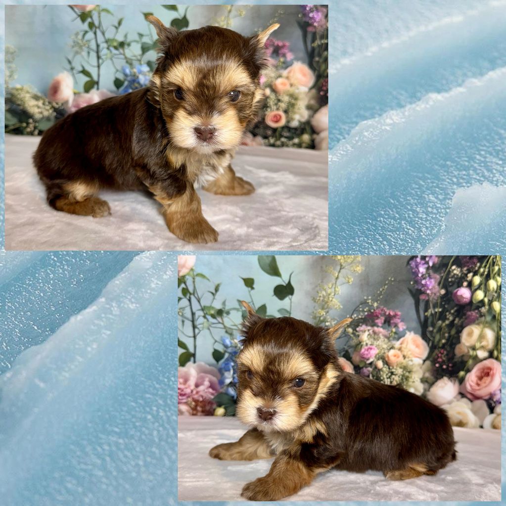 CKC Registered. Chocolate Male Yorkie. Born Jan. 22, 2026. Will be vet checked and up to date on shots. Charting around 5 lbs. Ready March 19, 2026.